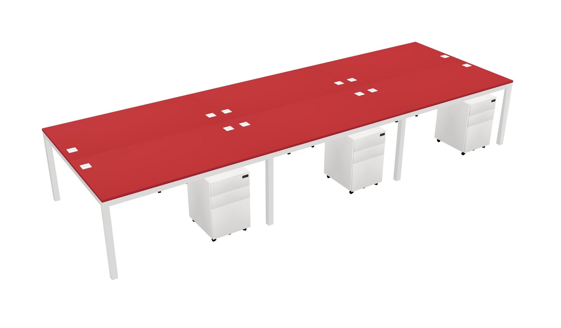 Prism Red Shared Rectangular Office Desk With Metal Mobile Drawers For 6 Persons