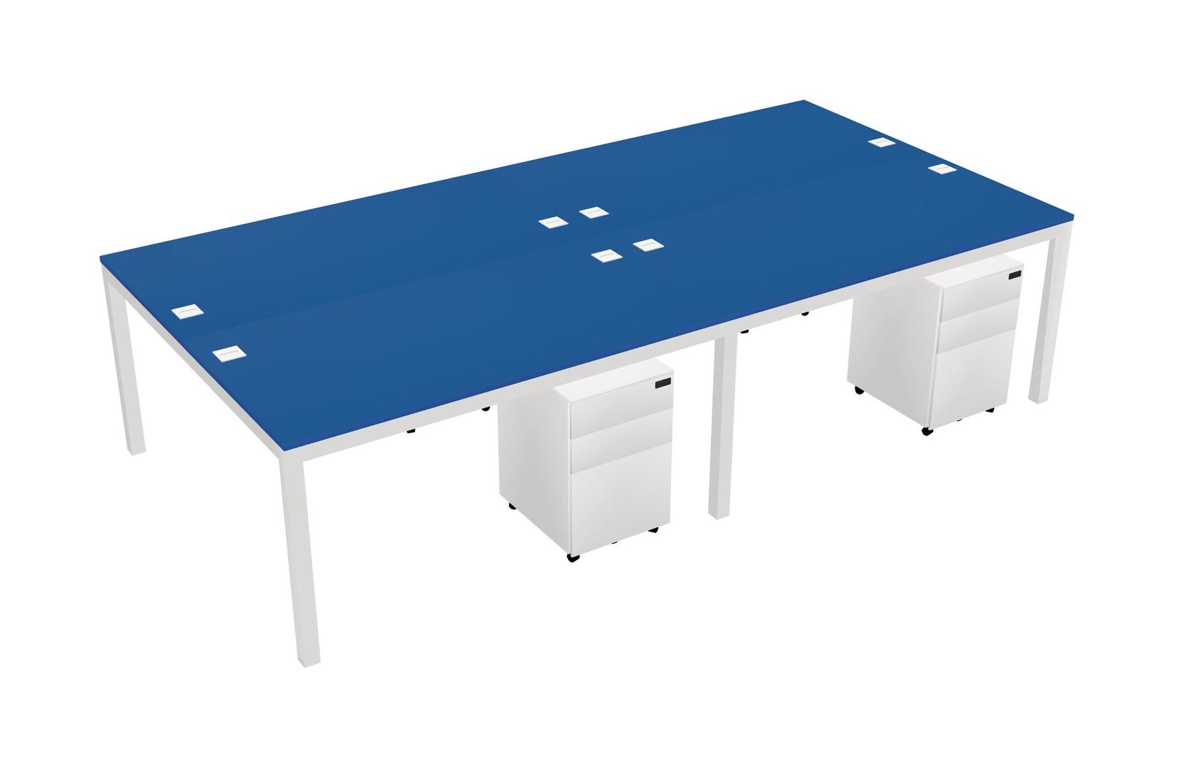 Prism Blue Shared Rectangular Office Desk With Metal Mobile Drawers For 4 Persons