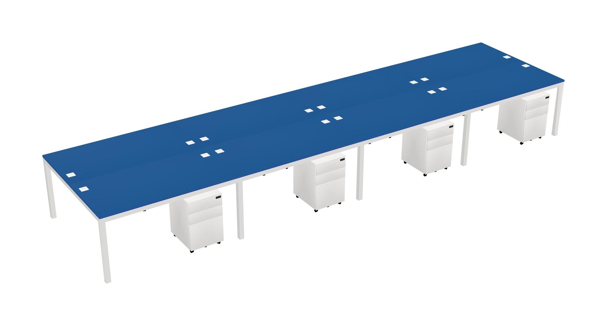 Prism Blue Shared Rectangular Office Desk With Metal Mobile Drawers For 8 Persons