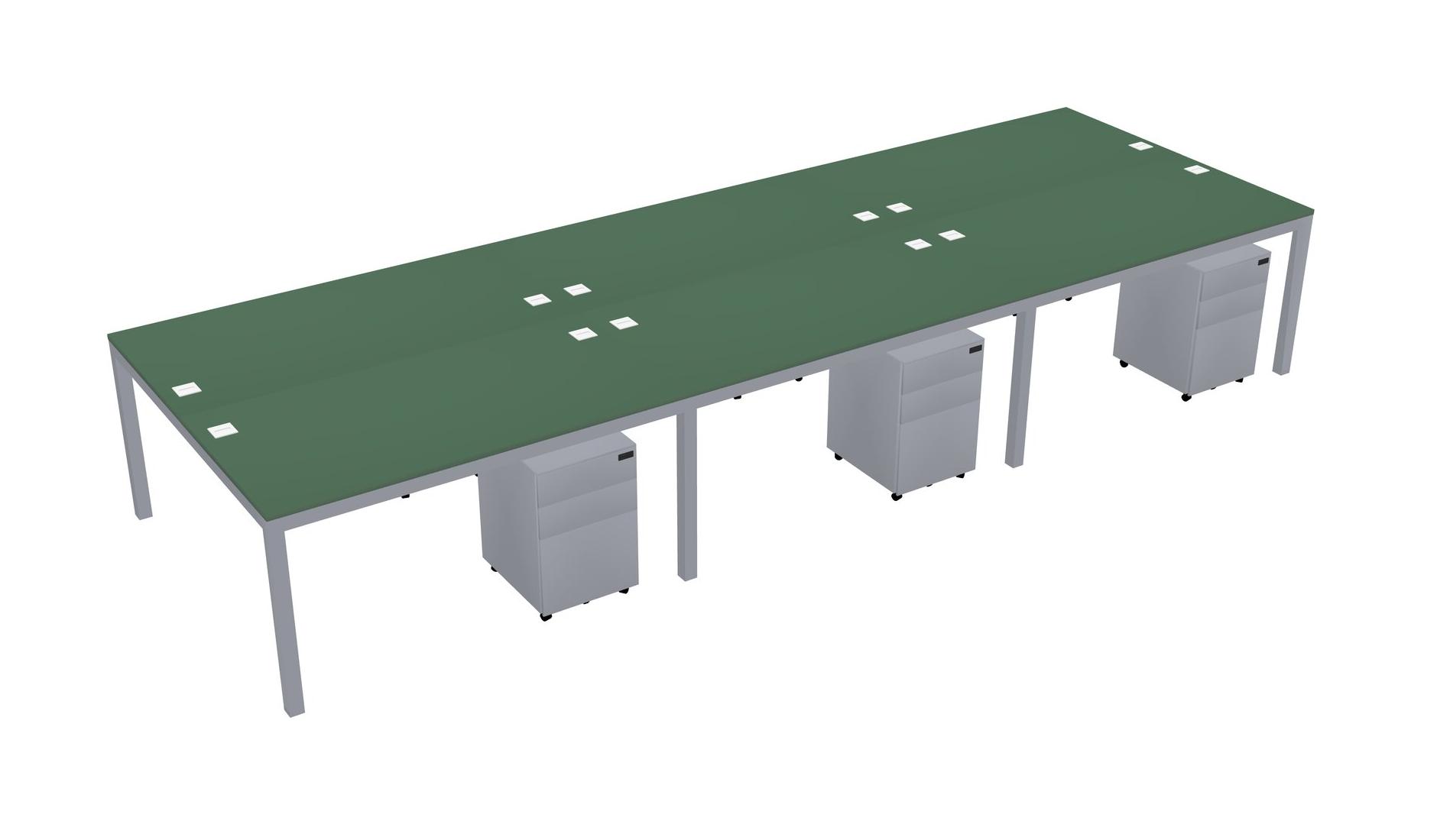 Green Shared Rectangular Office Desk With Metal Mobile Drawers For 6 Persons