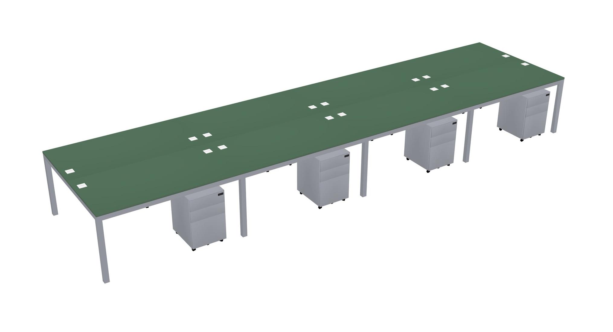 Green Shared Rectangular Office Desk With Metal Mobile Drawers For 8 Persons