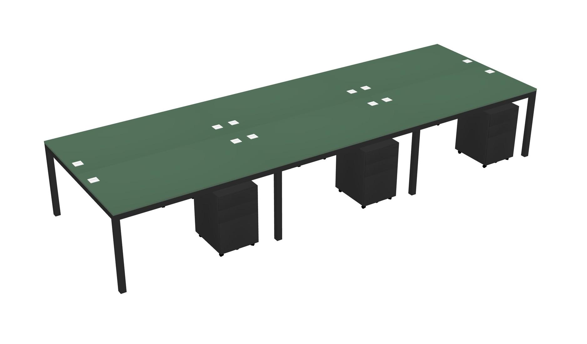 Green Shared Rectangular Office Desk With Metal Mobile Drawers For 6 Persons