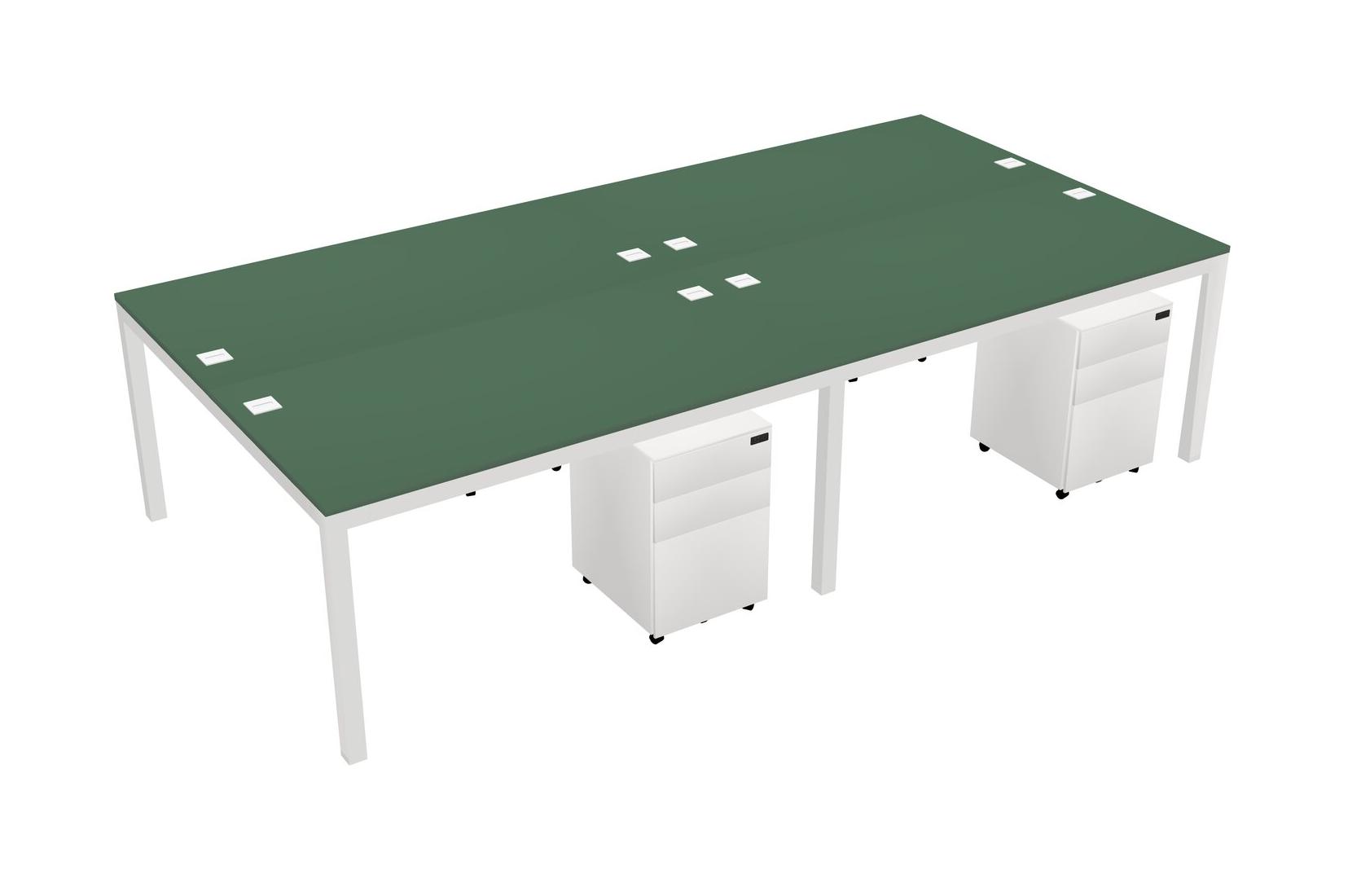 Green Shared Rectangular Office Desk With Metal Mobile Drawers For 4 Persons