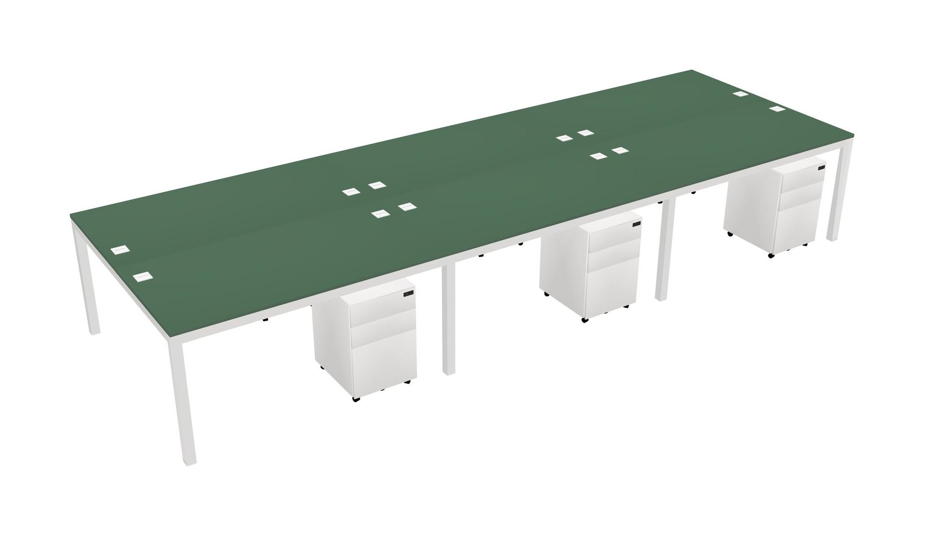 Green Shared Rectangular Office Desk With Metal Mobile Drawers For 6 Persons
