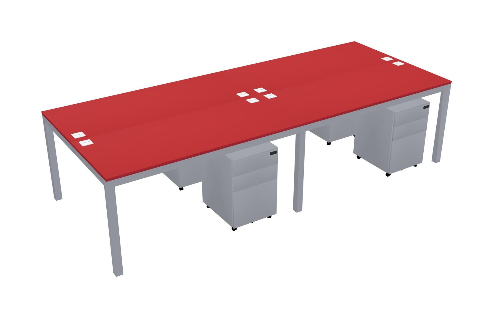 Prism Red Shared Rectangular Office Desk With Metal Mobile Drawers For 4 Persons