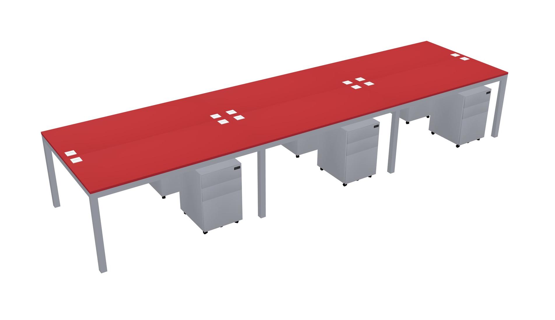 Prism Red Shared Rectangular Office Desk With Metal Mobile Drawers For 6 Persons