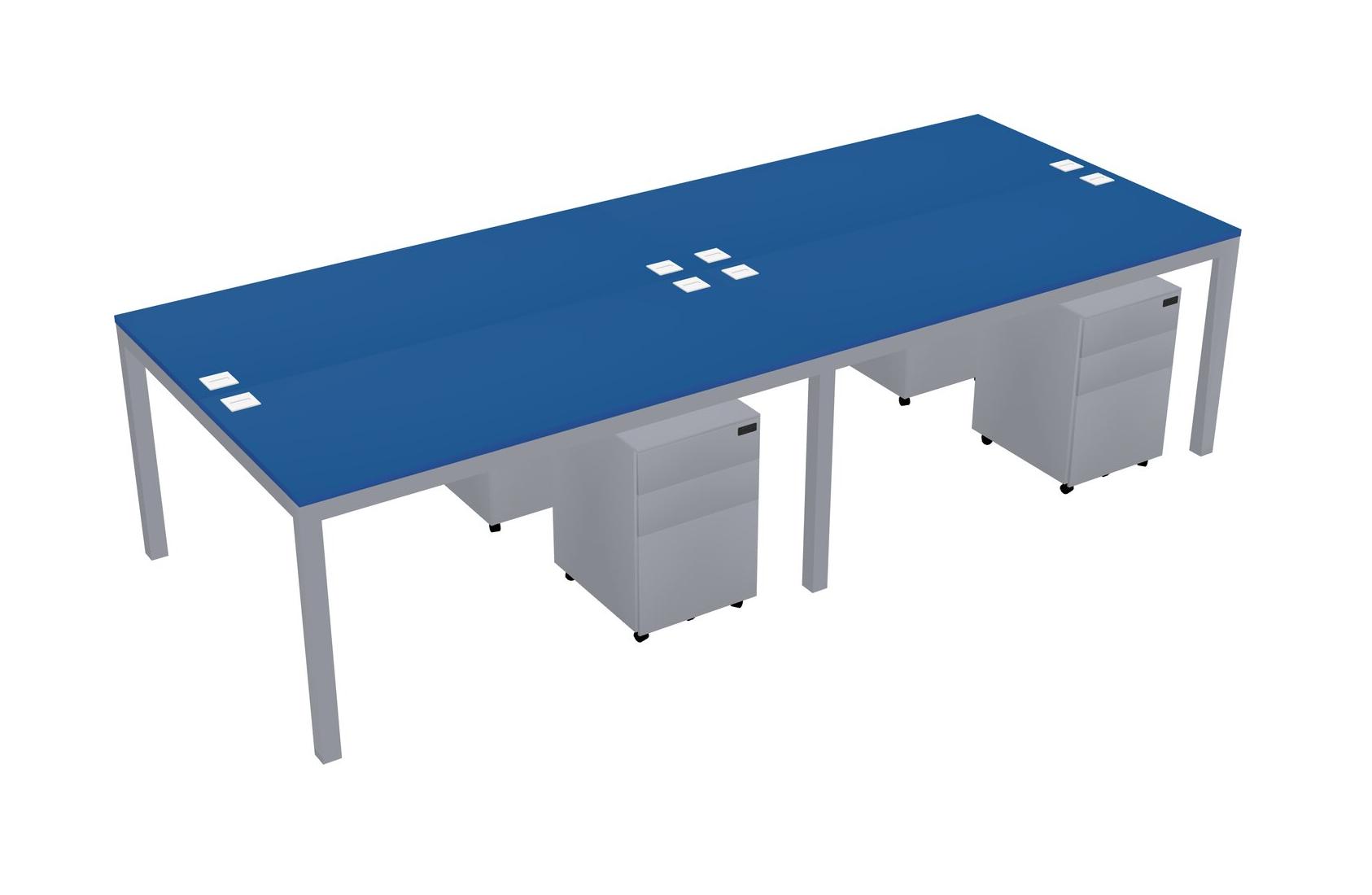 Prism Blue Shared Rectangular Office Desk With Metal Mobile Drawers For 4 Persons