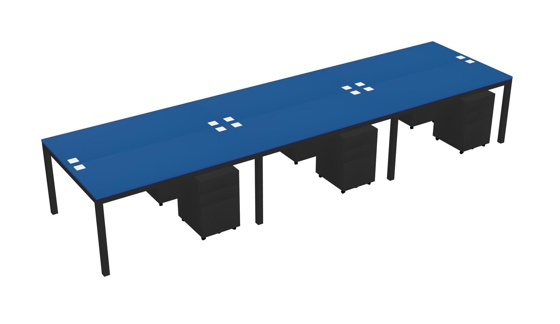 Prism Blue Shared Rectangular Office Desk With Metal Mobile Drawers For 6 Persons