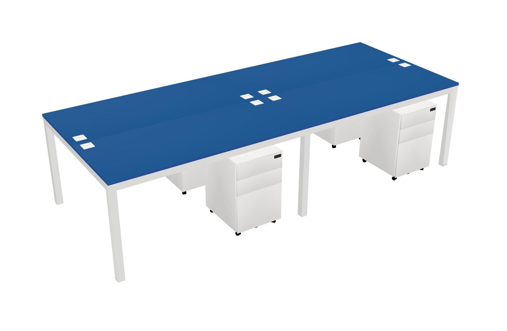 Prism Blue Shared Rectangular Office Desk With Metal Mobile Drawers For 4 Persons