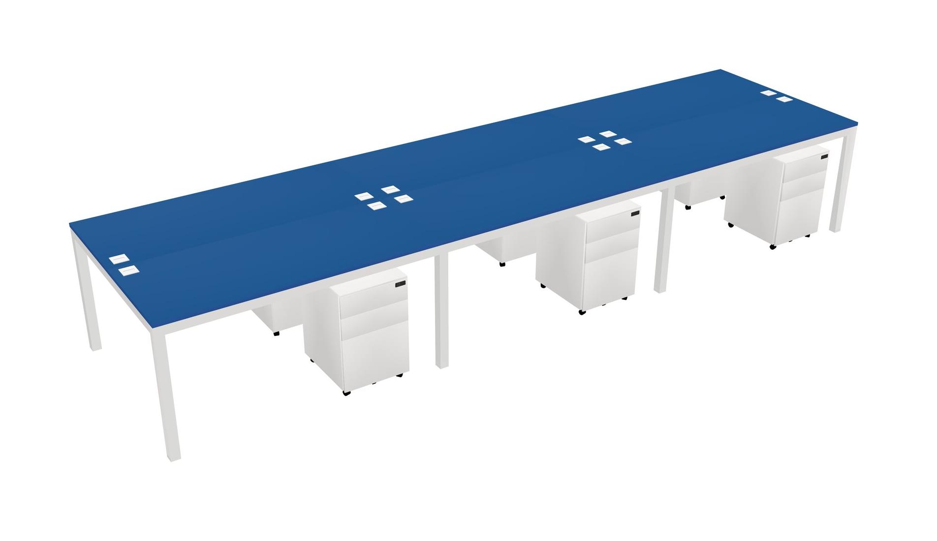 Prism Blue Shared Rectangular Office Desk With Metal Mobile Drawers For 6 Persons