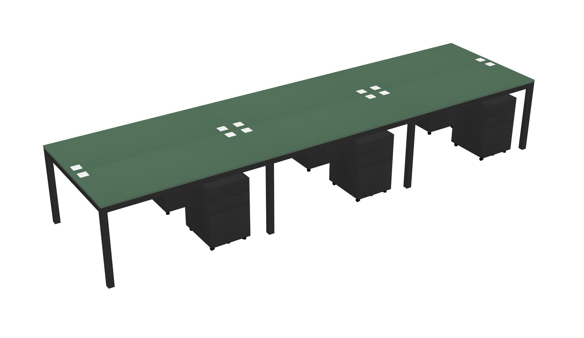 Green Shared Rectangular Office Desk With Metal Mobile Drawers For 6 Persons