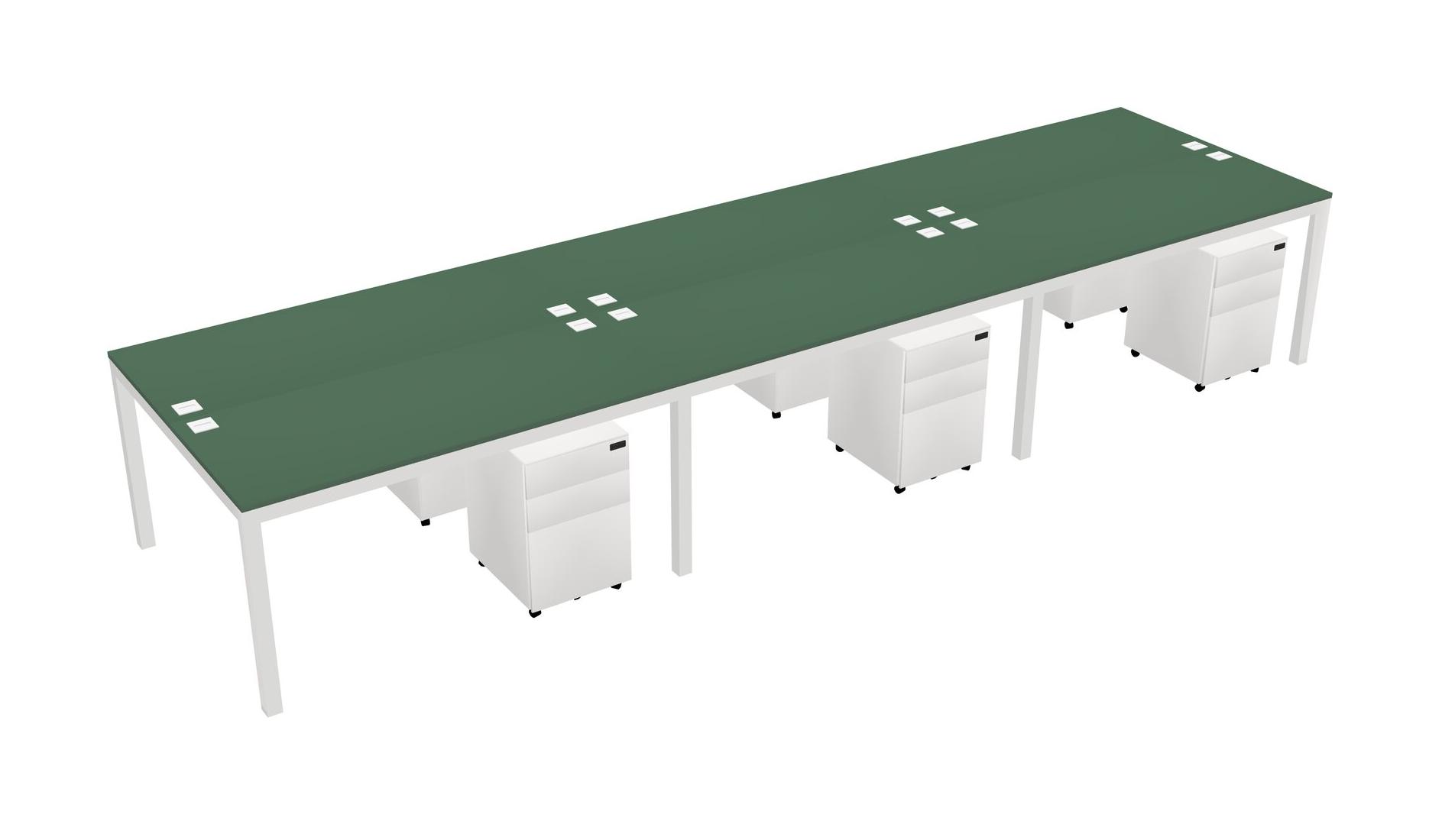 Green Shared Rectangular Office Desk With Metal Mobile Drawers For 6 Persons