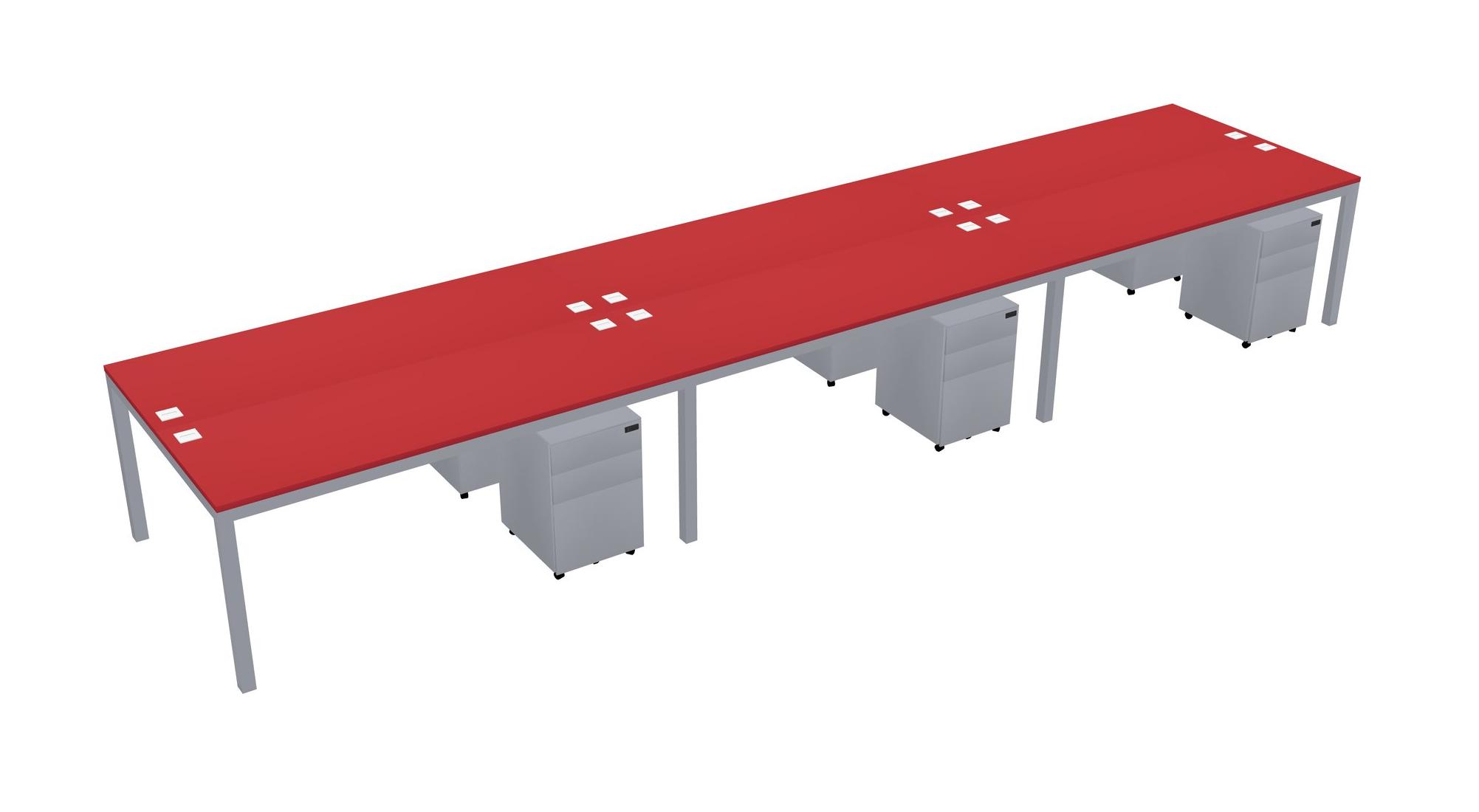 Prism Red Shared Rectangular Office Desk With Metal Mobile Drawers For 6 Persons
