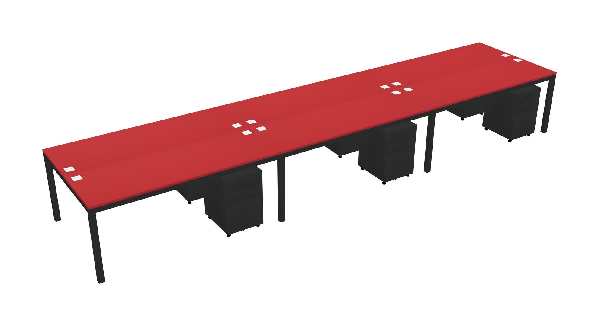 Prism Red Shared Rectangular Office Desk With Metal Mobile Drawers For 6 Persons