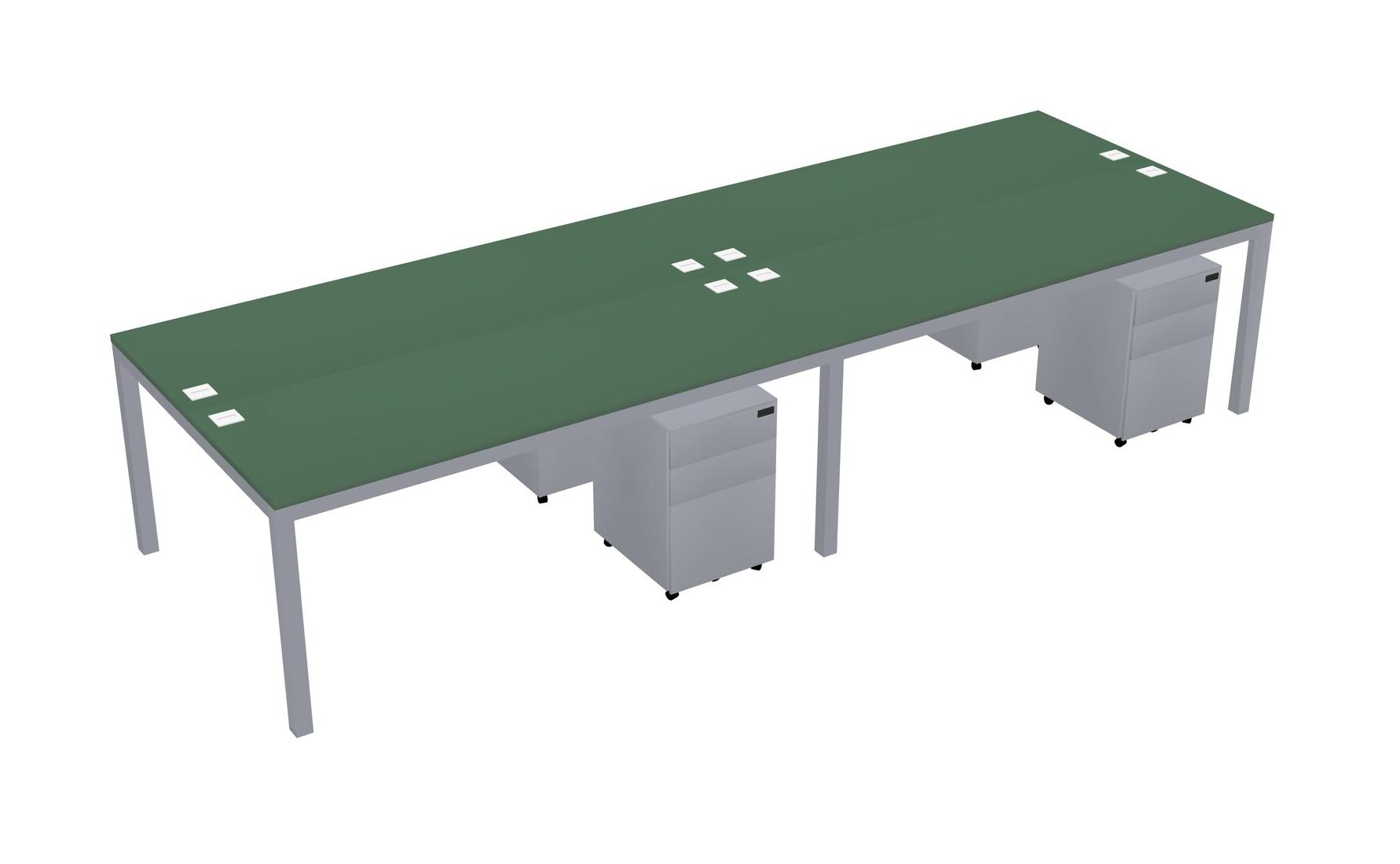 Green Shared Rectangular Office Desk With Metal Mobile Drawers For 4 Persons