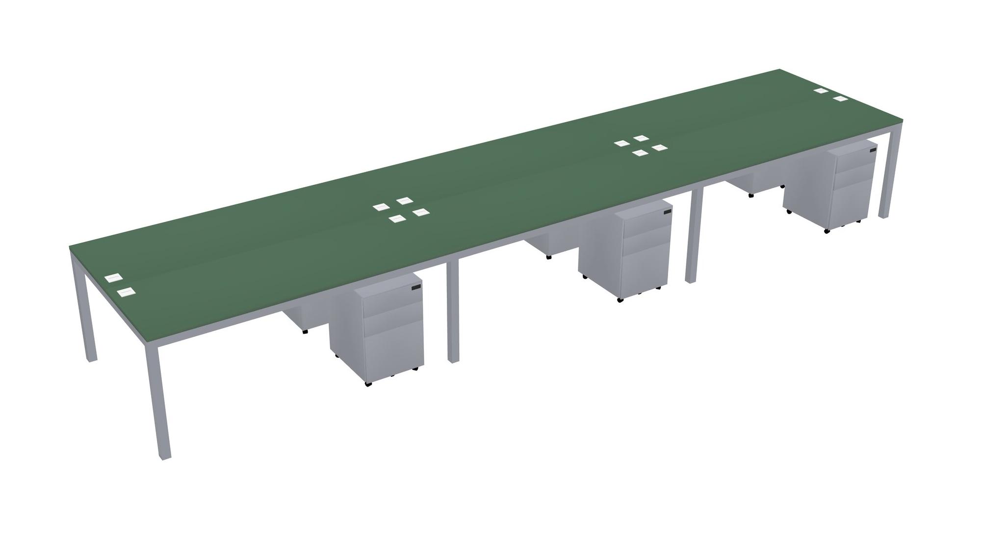 Green Shared Rectangular Office Desk With Metal Mobile Drawers For 6 Persons