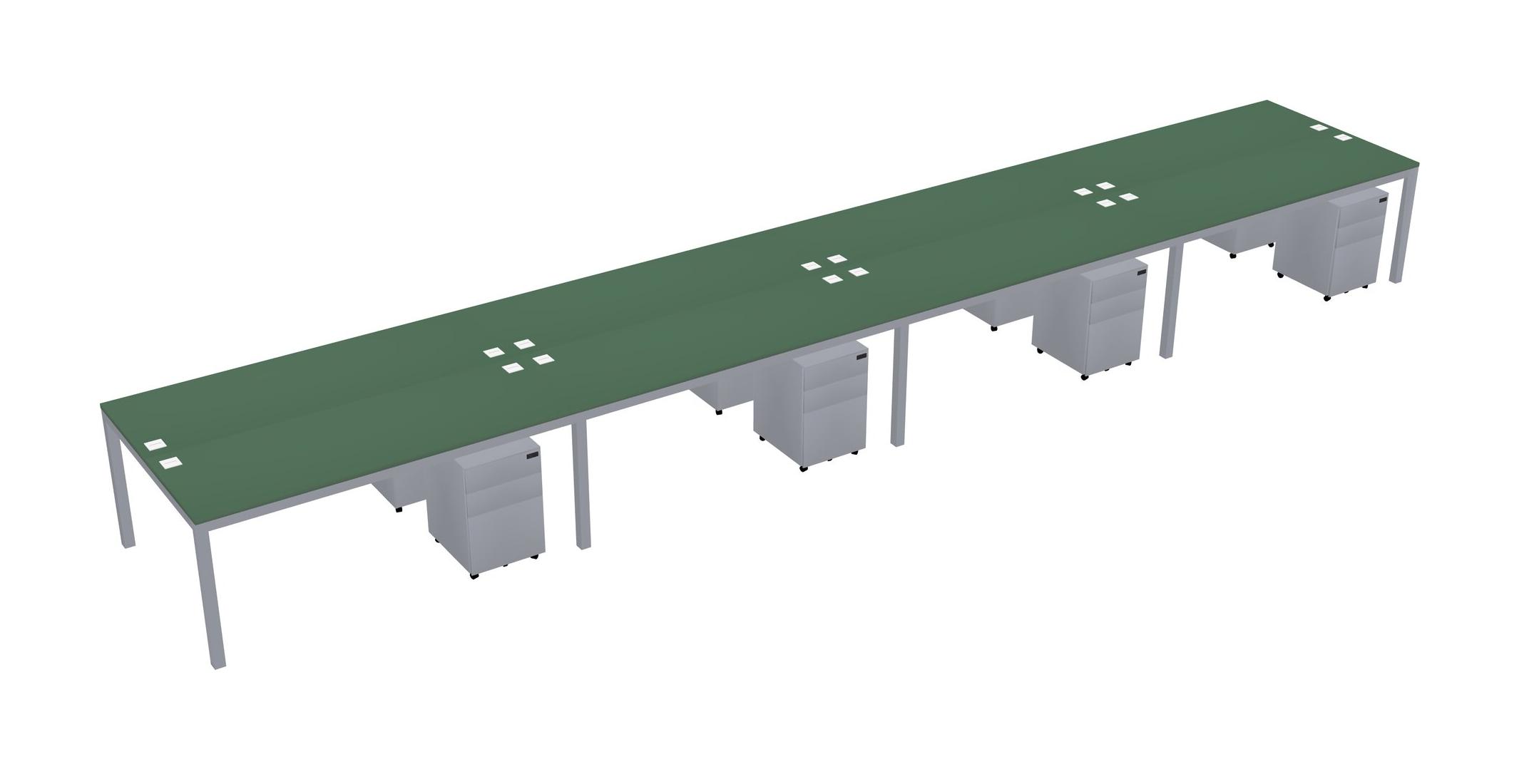 Green Shared Rectangular Office Desk With Metal Mobile Drawers For 8 Persons