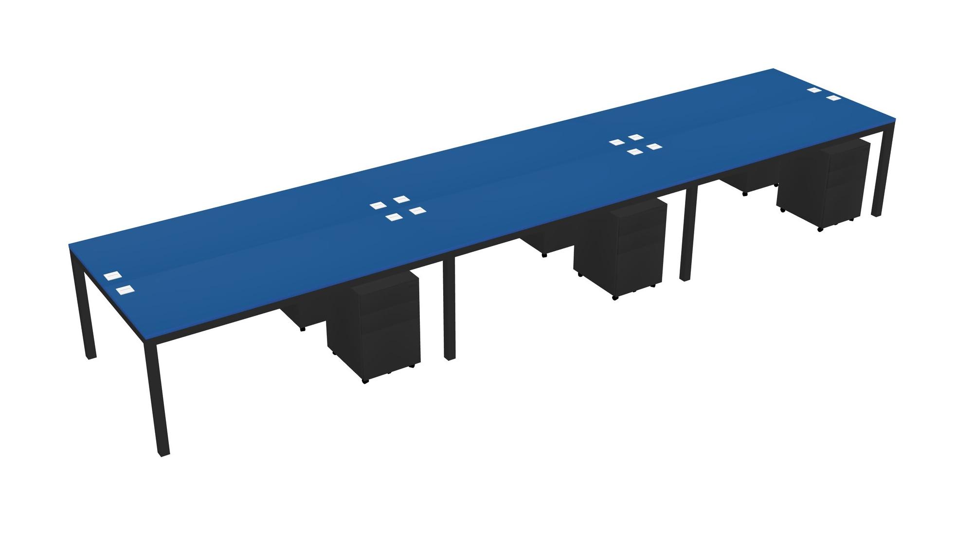 Prism Blue Shared Rectangular Office Desk With Metal Mobile Drawers For 6 Persons
