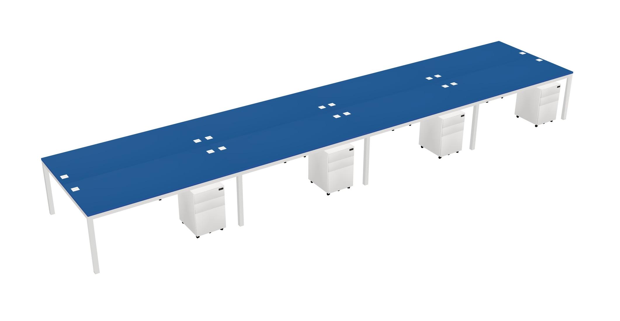 Prism Blue Shared Rectangular Office Desk With Metal Mobile Drawers For 8 Persons