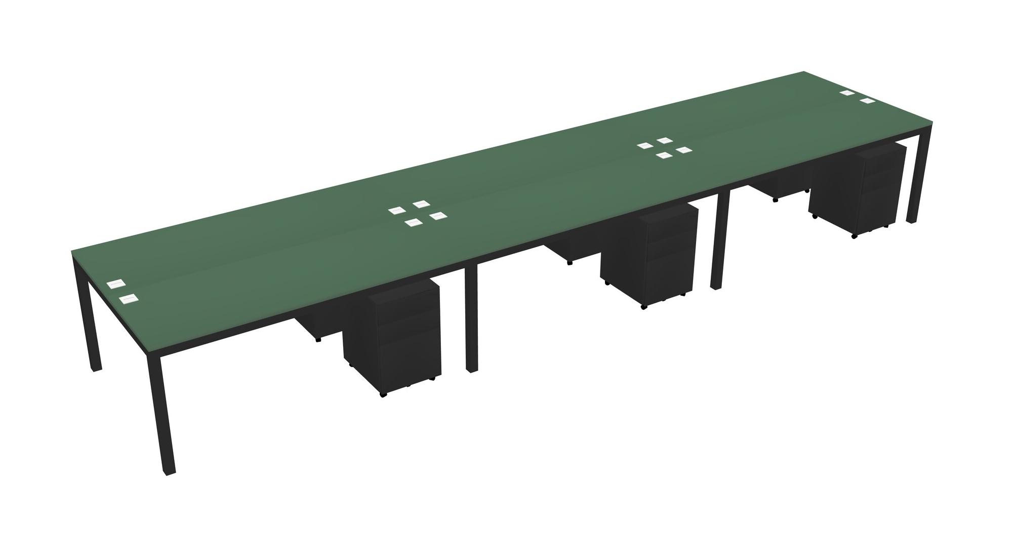 Green Shared Rectangular Office Desk With Metal Mobile Drawers For 6 Persons
