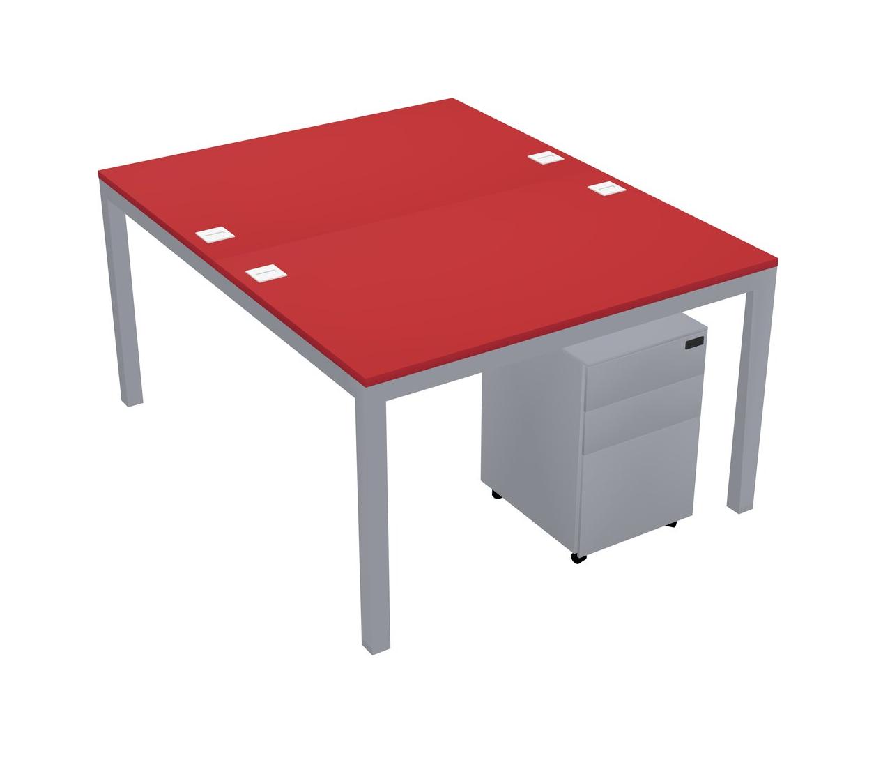 Prism Red Shared Rectangular Office Desk With Metal Mobile Drawers For 2 Persons