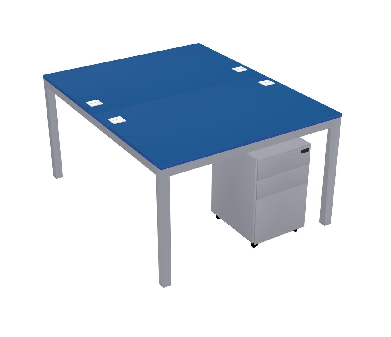 Prism Blue Shared Rectangular Office Desk With Metal Mobile Drawers For 2 Persons