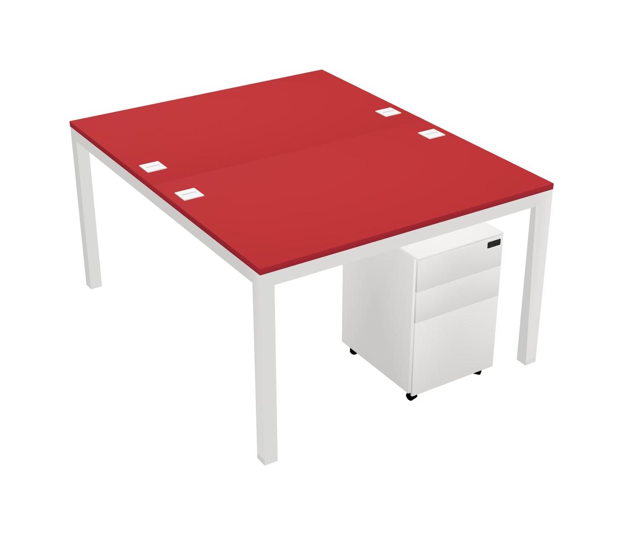 Prism Red Shared Rectangular Office Desk With Metal Mobile Drawers For 2 Persons