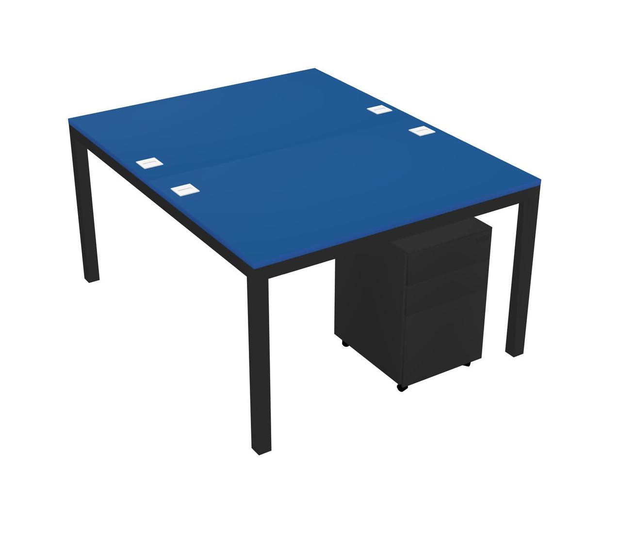 Prism Blue Shared Rectangular Office Desk With Metal Mobile Drawers For 2 Persons