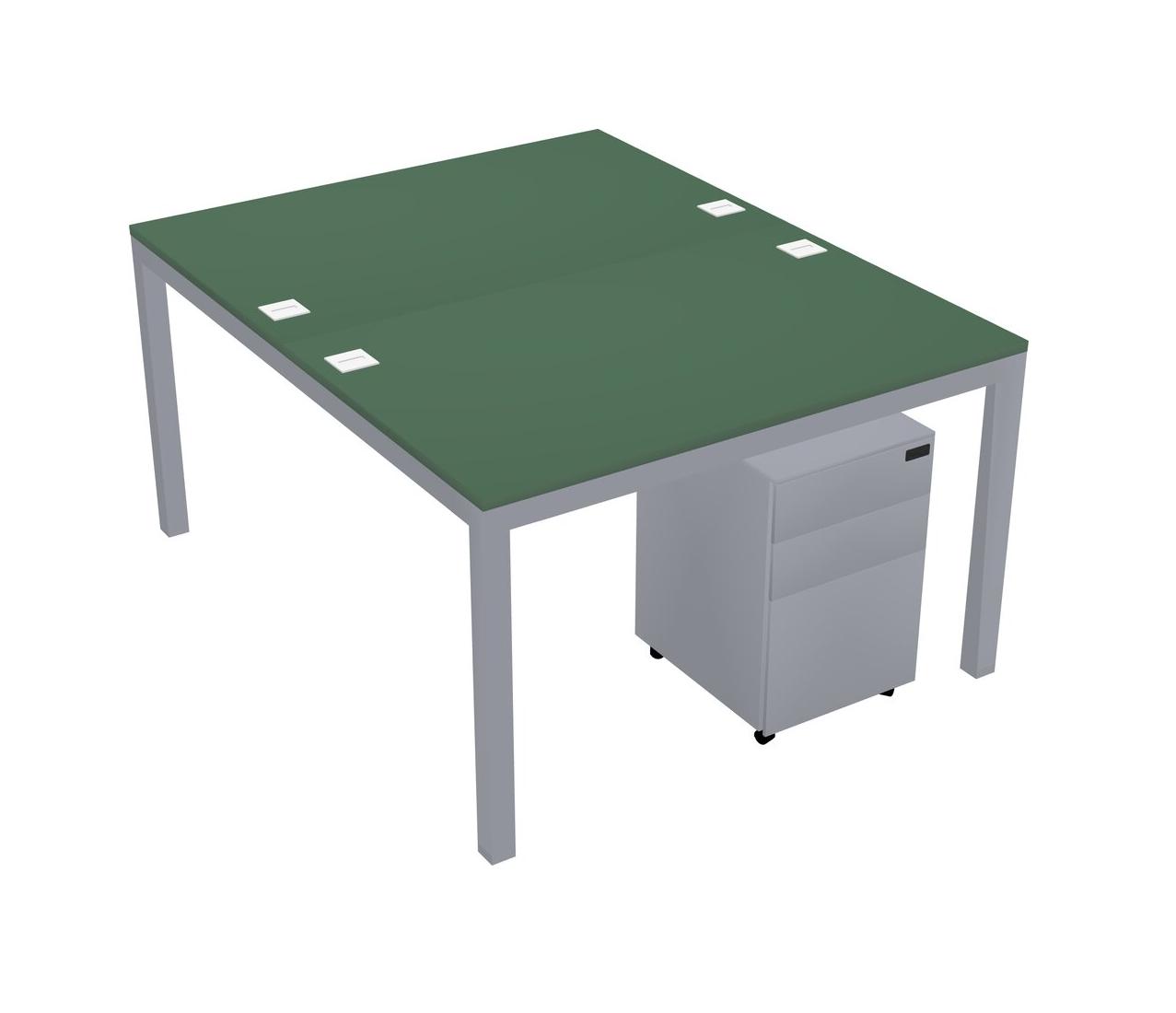 Green Shared Rectangular Office Desk With Metal Mobile Drawers For 2 Persons