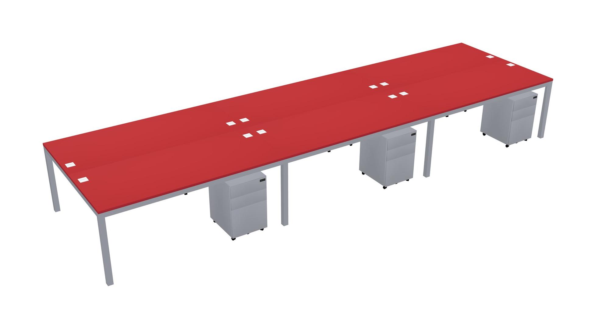 Prism Red Shared Rectangular Office Desk With Metal Mobile Drawers For 6 Persons