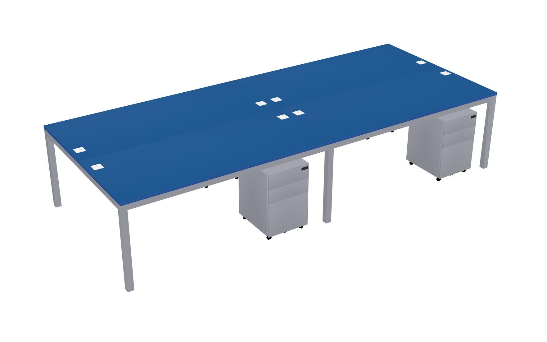 Prism Blue Shared Rectangular Office Desk With Metal Mobile Drawers For 4 Persons