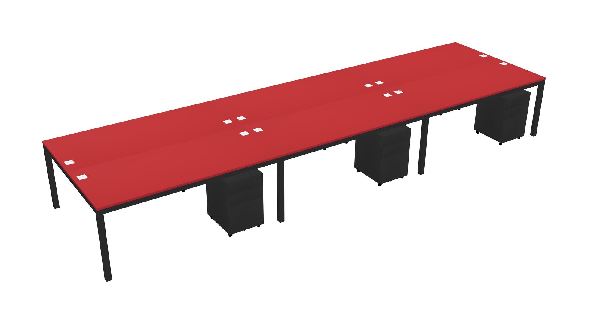 Prism Red Shared Rectangular Office Desk With Metal Mobile Drawers For 6 Persons