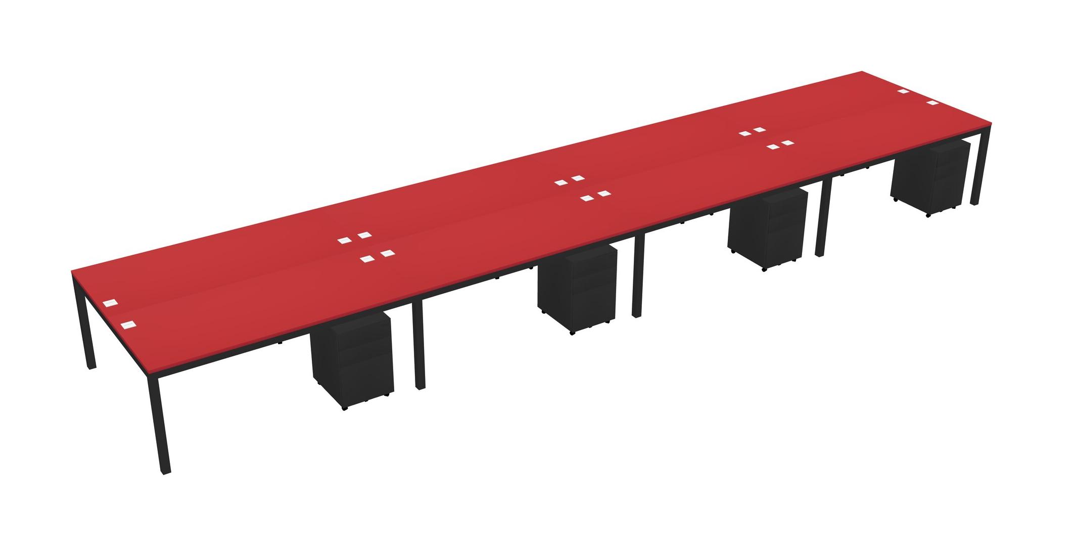 Prism Red Shared Rectangular Office Desk With Metal Mobile Drawers For 8 Persons