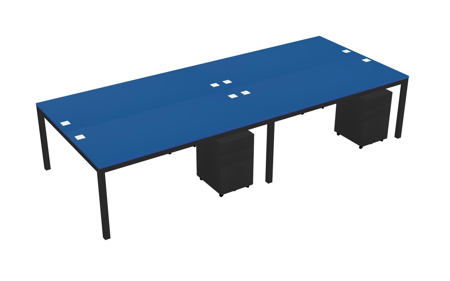 Prism Blue Shared Rectangular Office Desk With Metal Mobile Drawers For 4 Persons