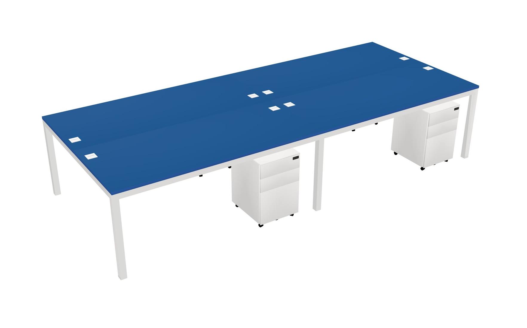 Prism Blue Shared Rectangular Office Desk With Metal Mobile Drawers For 4 Persons