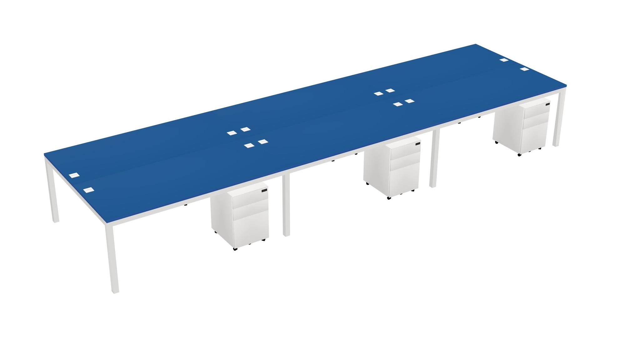 Prism Blue Shared Rectangular Office Desk With Metal Mobile Drawers For 6 Persons