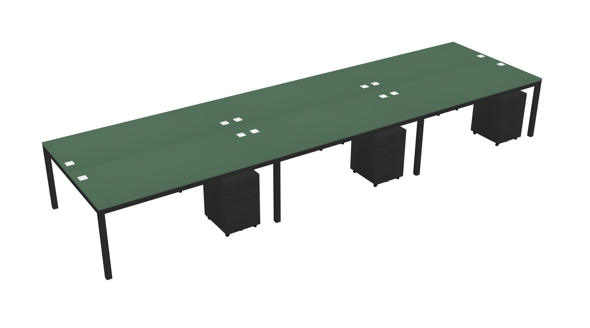 Green Shared Rectangular Office Desk With Metal Mobile Drawers For 6 Persons