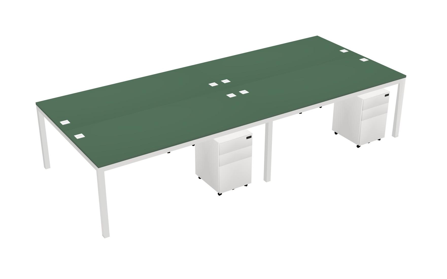 Green Shared Rectangular Office Desk With Metal Mobile Drawers For 4 Persons