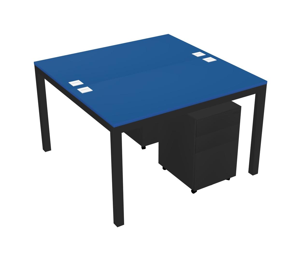 Prism Blue Shared Rectangular Office Desk With Metal Mobile Drawers For 2 Persons