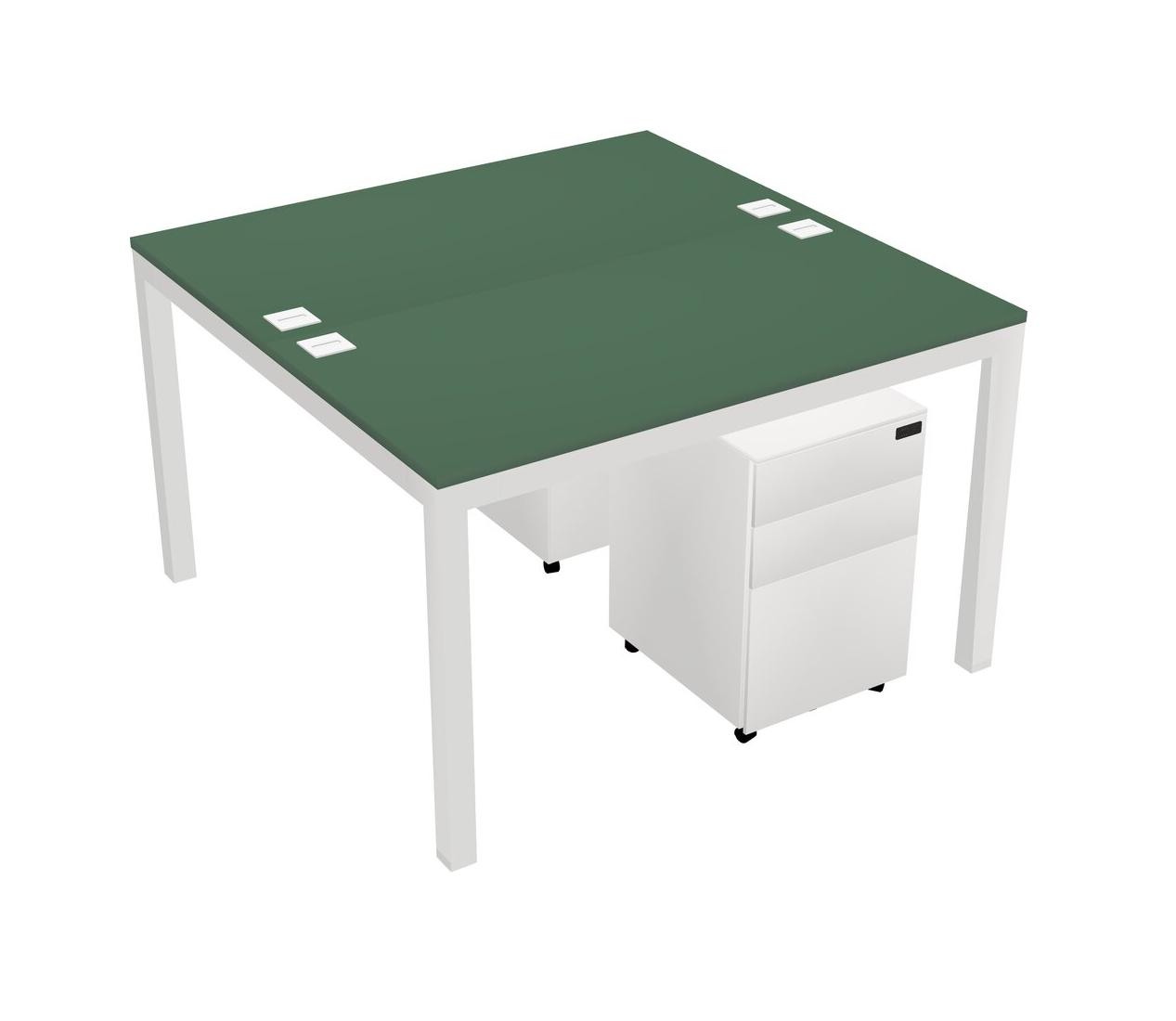 Green Shared Rectangular Office Desk With Metal Mobile Drawers For 2 Persons