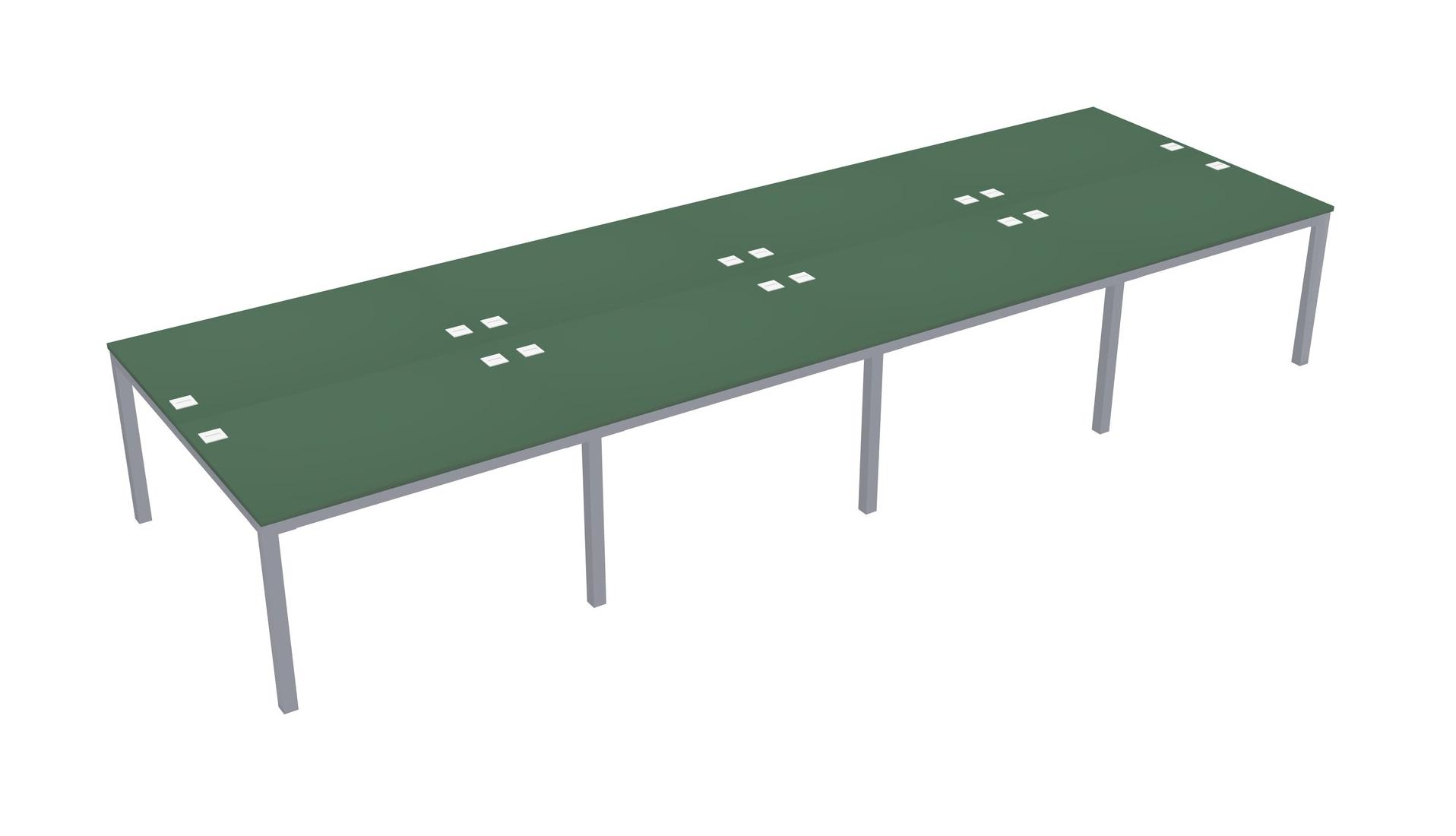 Green Shared Rectangular Office Desk For 8 Persons