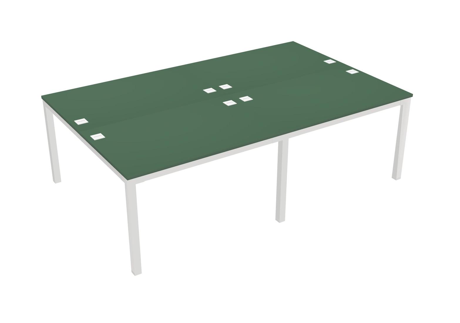 Green Shared Rectangular Office Desk For 4 Persons