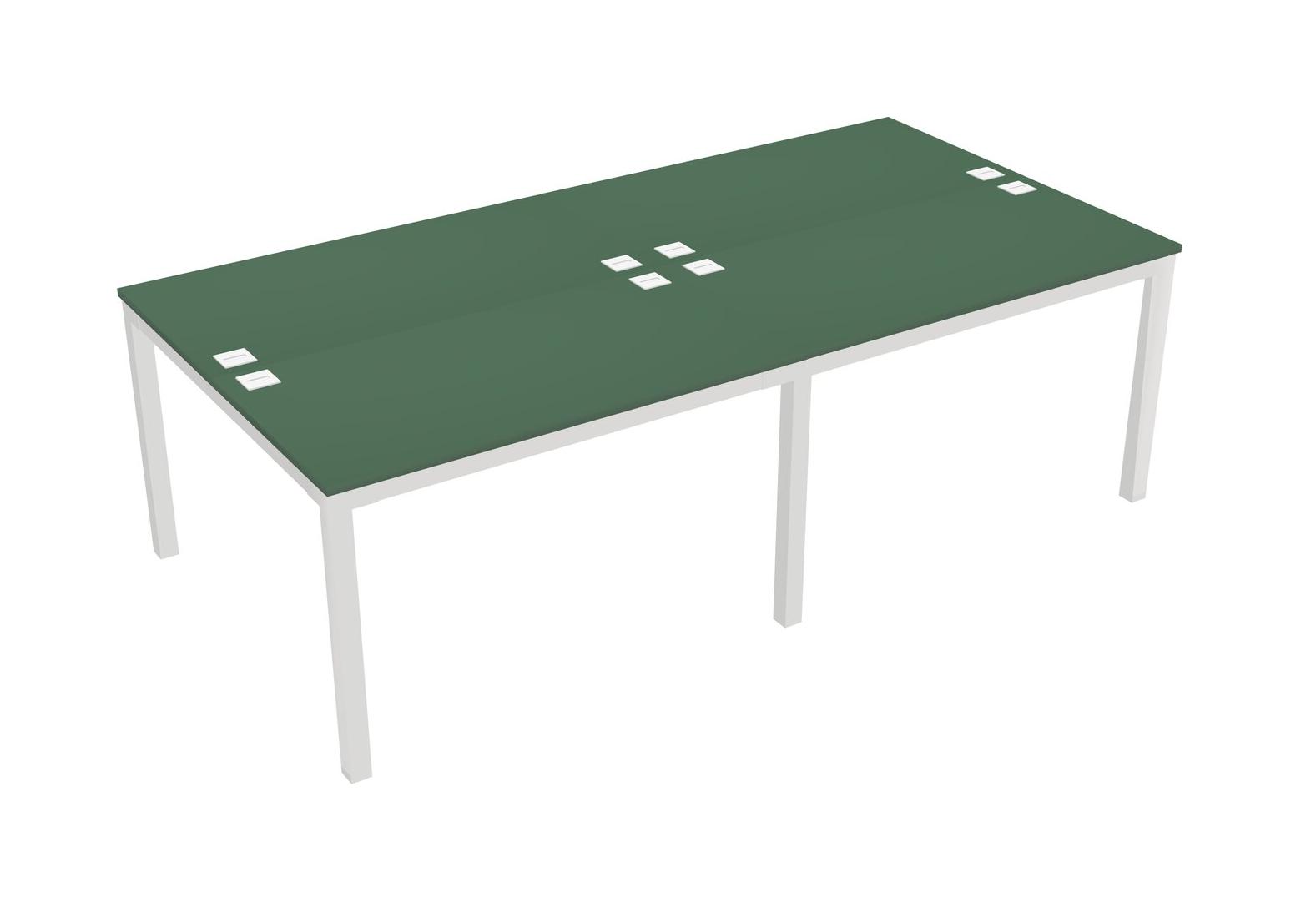 Green Shared Rectangular Office Desk For 4 Persons