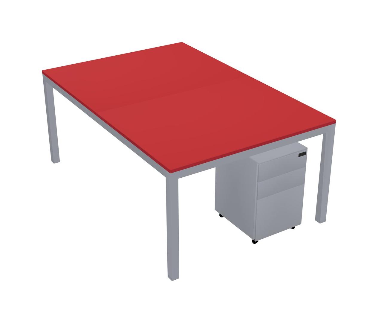 Prism Red Shared Rectangular Office Desk With Metal Mobile Drawers For 2 Persons