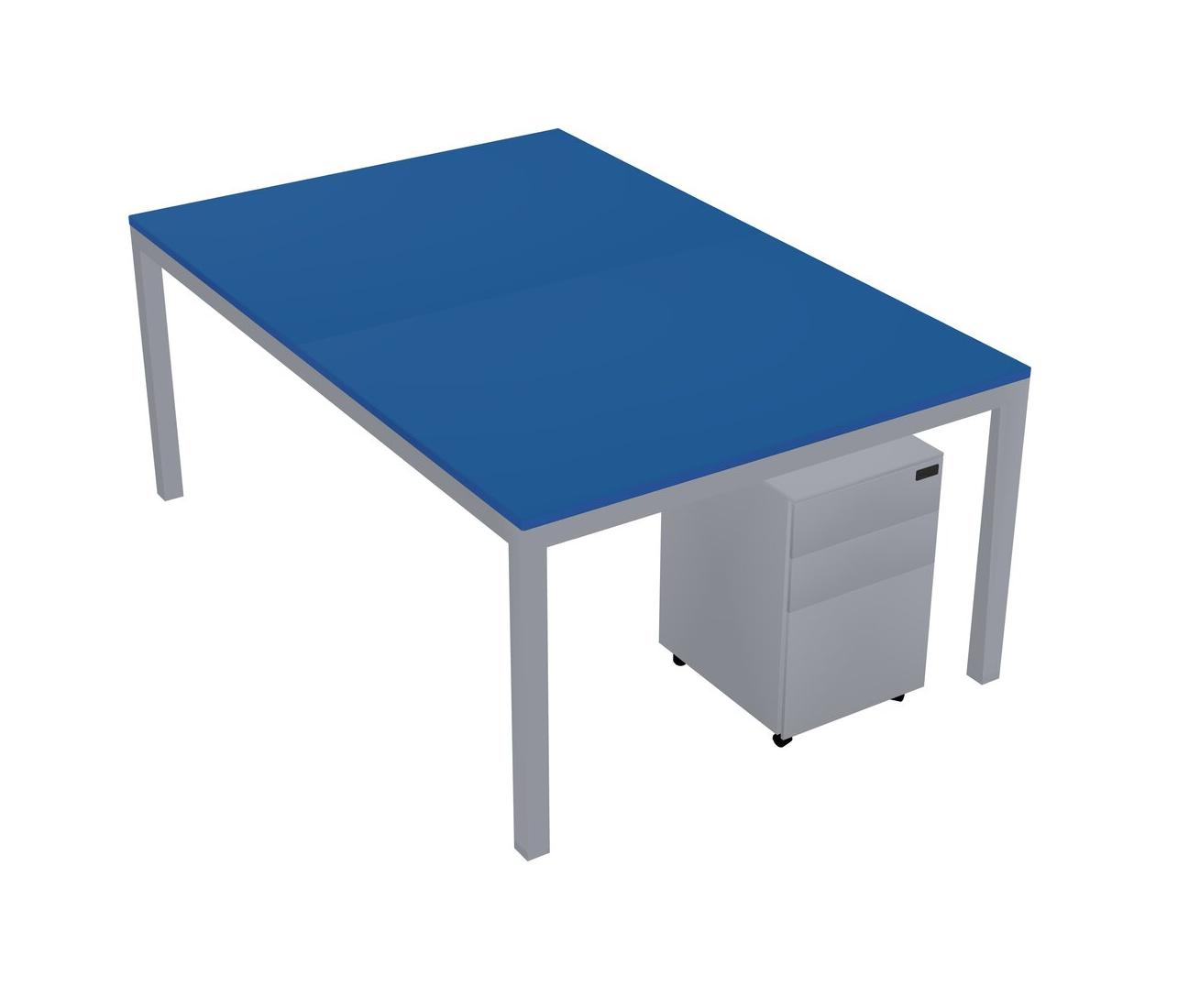 Prism Blue Shared Rectangular Office Desk With Metal Mobile Drawers For 2 Persons