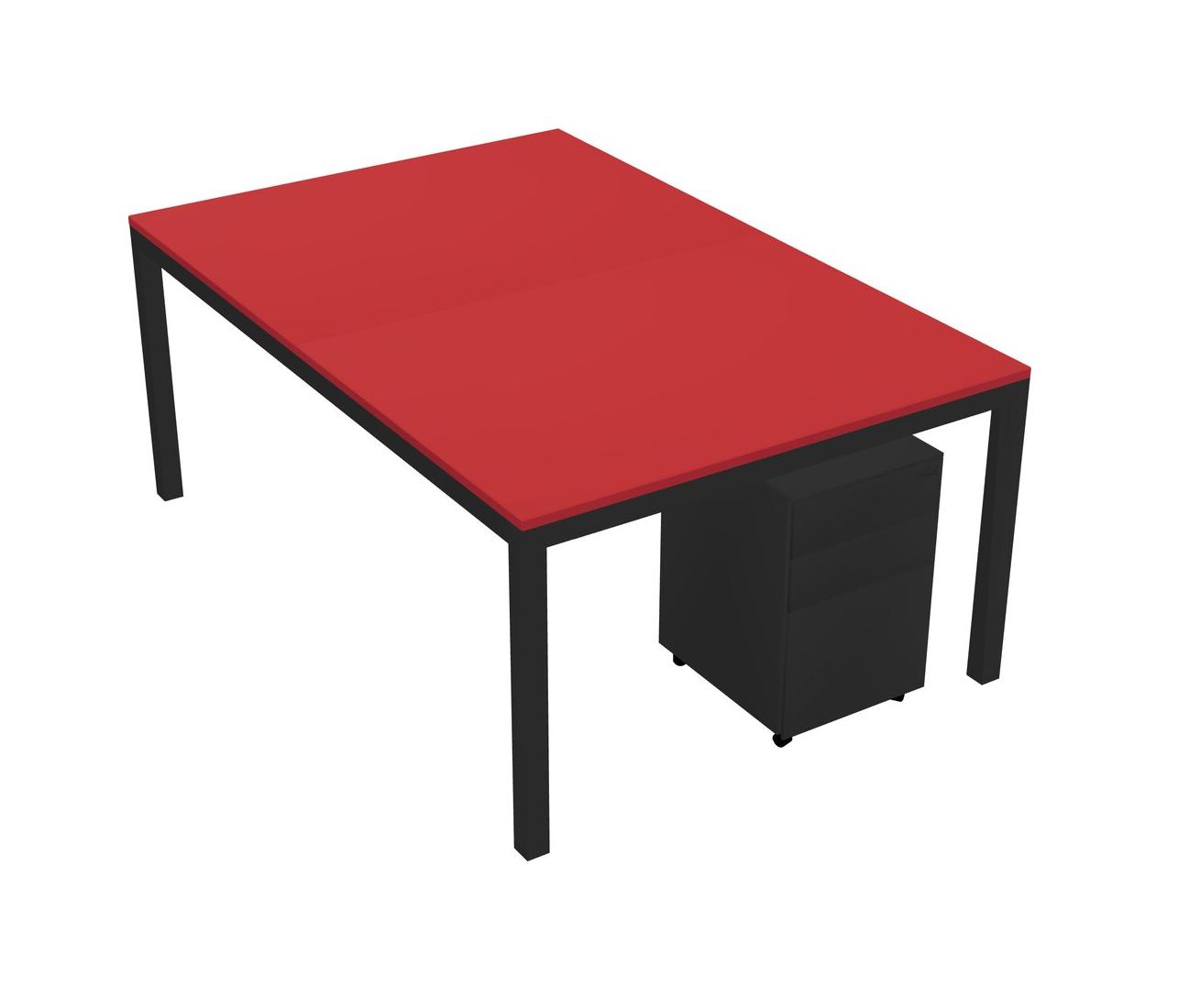Prism Red Shared Rectangular Office Desk With Metal Mobile Drawers For 2 Persons
