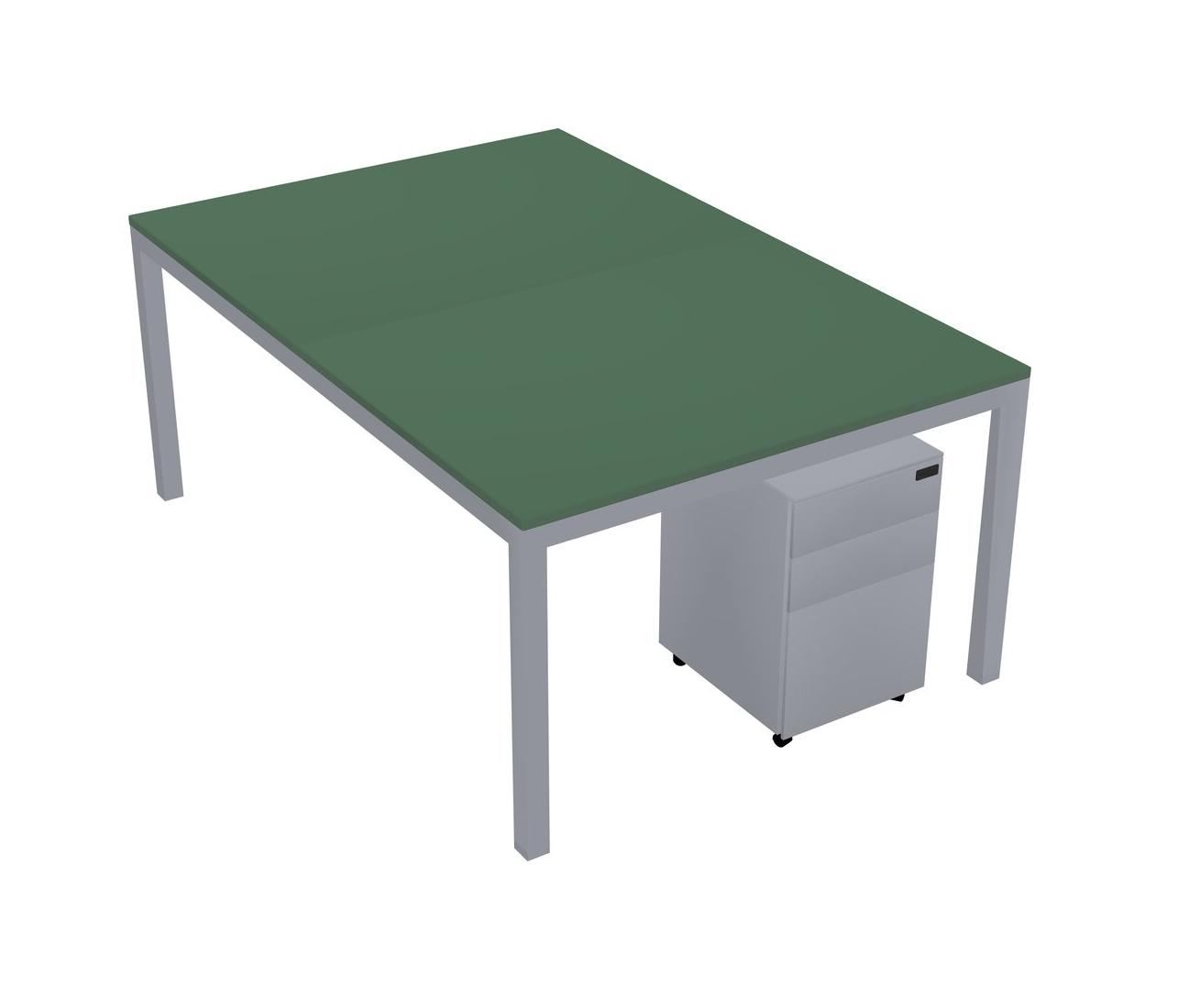 Green Shared Rectangular Office Desk With Metal Mobile Drawers For 2 Persons