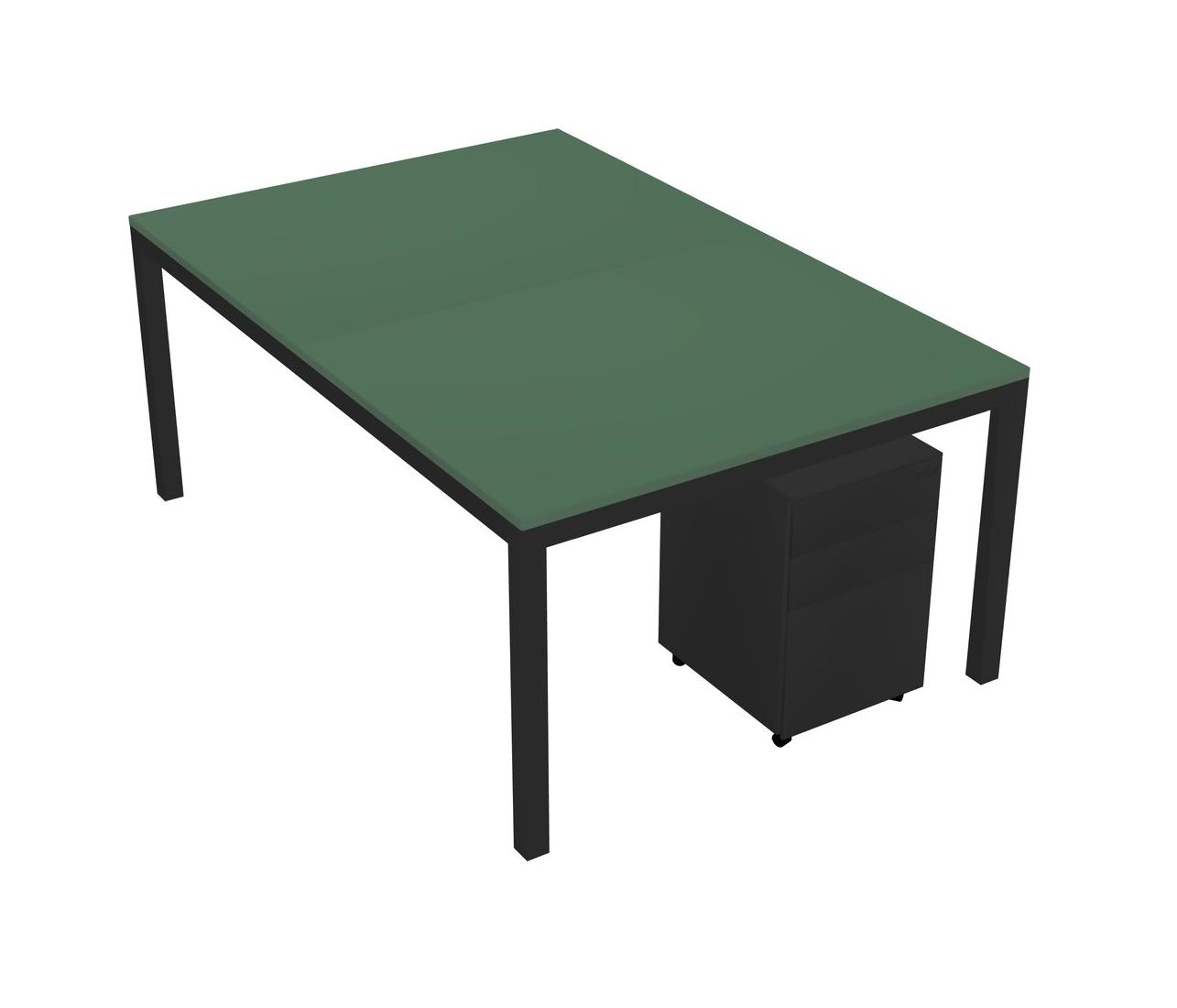 Green Shared Rectangular Office Desk With Metal Mobile Drawers For 2 Persons