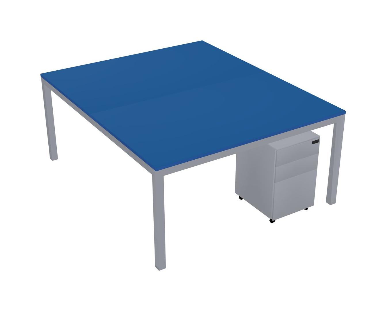Prism Blue Shared Rectangular Office Desk With Metal Mobile Drawers For 2 Persons