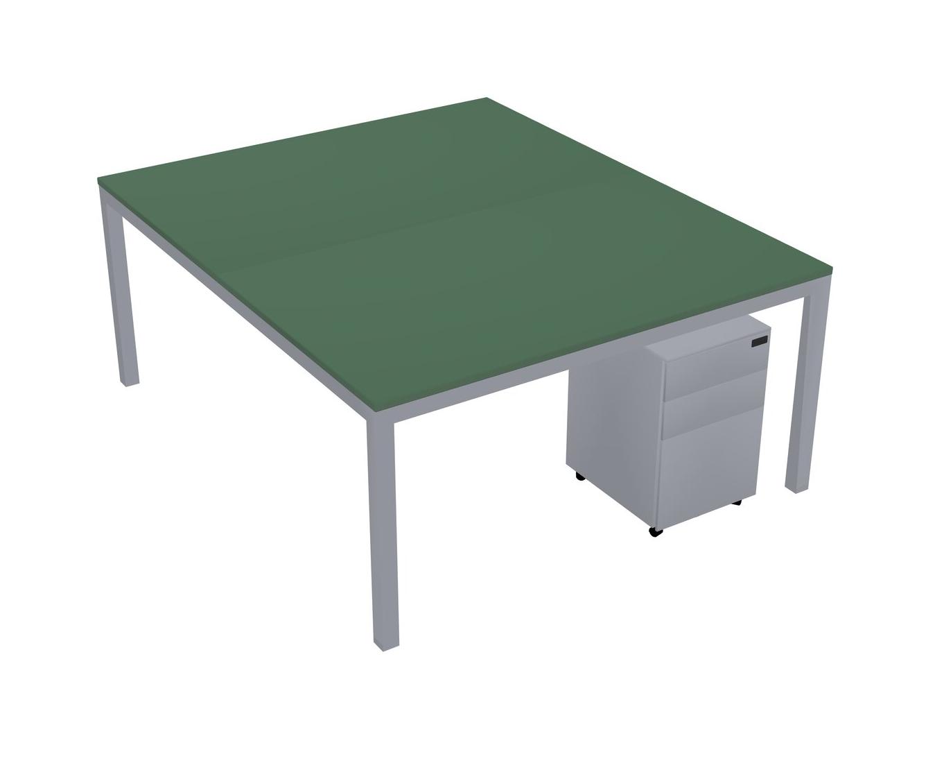 Green Shared Rectangular Office Desk With Metal Mobile Drawers For 2 Persons